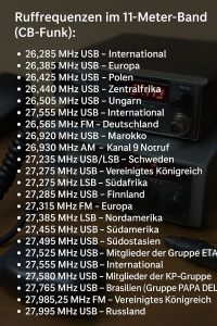 Anruffrequenzen im 10/11m (auch Schwarzfunker Bereich)